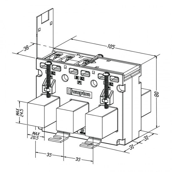 The M3N1 Range of 3-in-1 Current Transformers from Crompton Instruments combine three traditional Current Transformers into one moulded case. These can be directly installed in line with a three phase moulded case circuit breaker, saving installation time and taking up less space than three individual CTs. The M3N1-35 is ideal for applications such as Distribution systems, Generator sets, Control Panels and Switchgear.