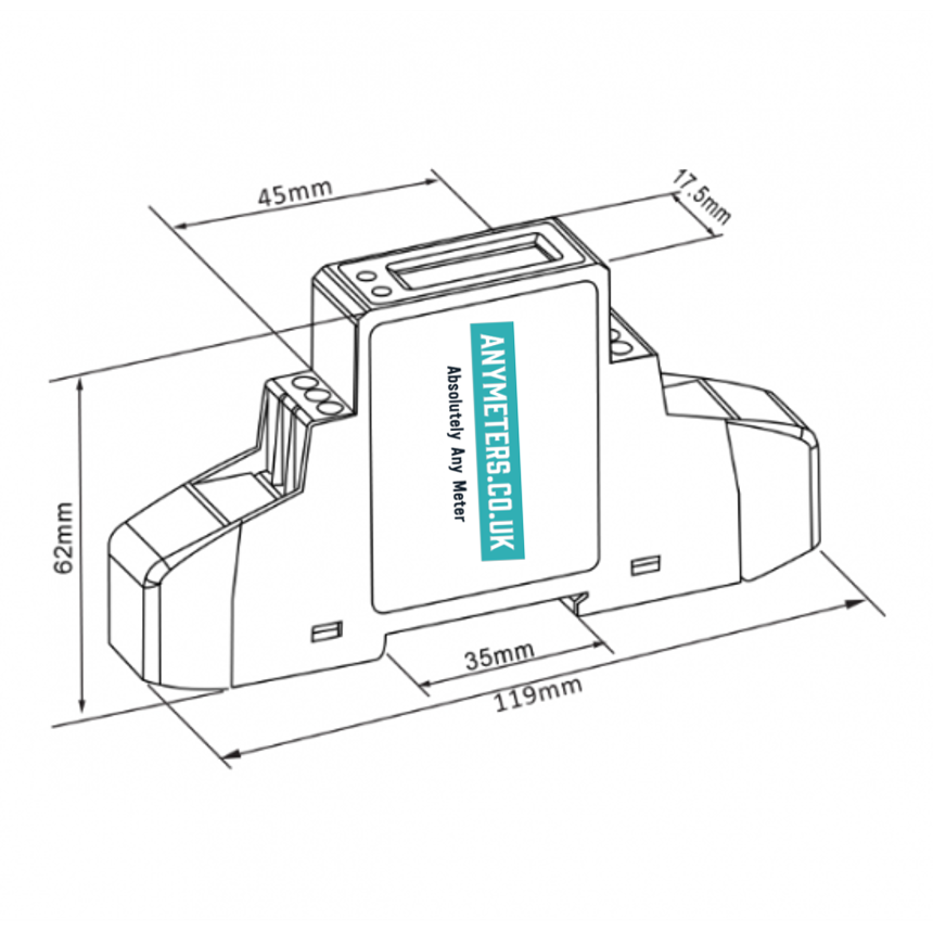 The SDM120-MOD-MID is a Single Phase Digital Power Meter that measures a range of parameters in a 45A AC Circuit, removing the need for additional current transformers. This particular meter has proven to be very popular due to how cost-effective it is. Unlike other meters available on the market, this model has Pulse and Modbus communications built in, eradicating the requirement of purchasing extra modules. The SDM120 Series is housed in a 1-DIN (17.5mm) case meaning it is compact and space-saving. This specific model measures Voltage, Current, Power Factor, Active Power, Reactive Power, Apparent Power, Total Active Energy, Import & Export Active Energy.